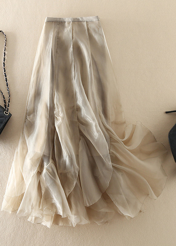 Stylish Champagne Patchwork wrinkled Chiffon Tulle Skirt Spring