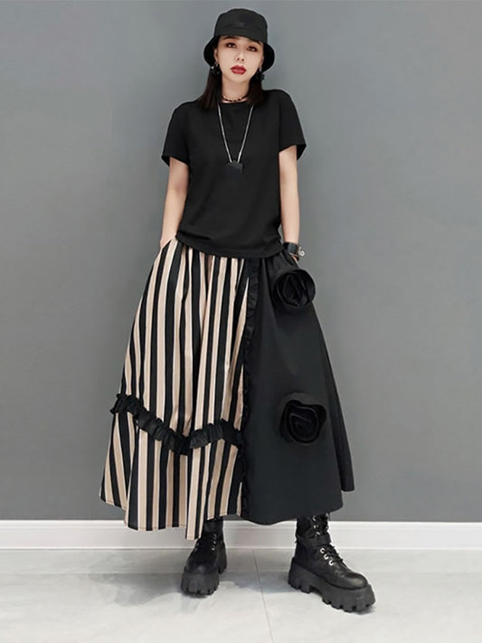 Fashion Loose Casual Ethnic Style Striprd Patchwork Skirts