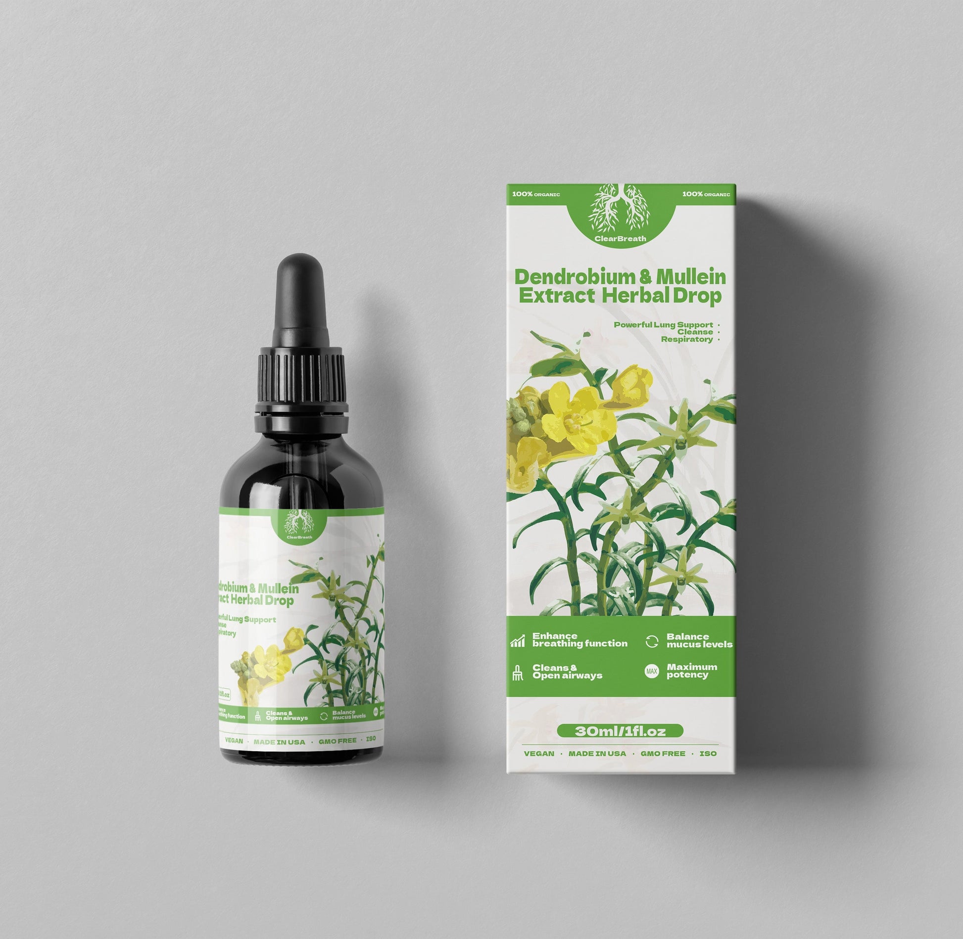 - ClearBreath® Dendrobium & Mullein Extract Herbal Drops 30ml/1fl.oz(1/2/4/8/10/15 Bottles)