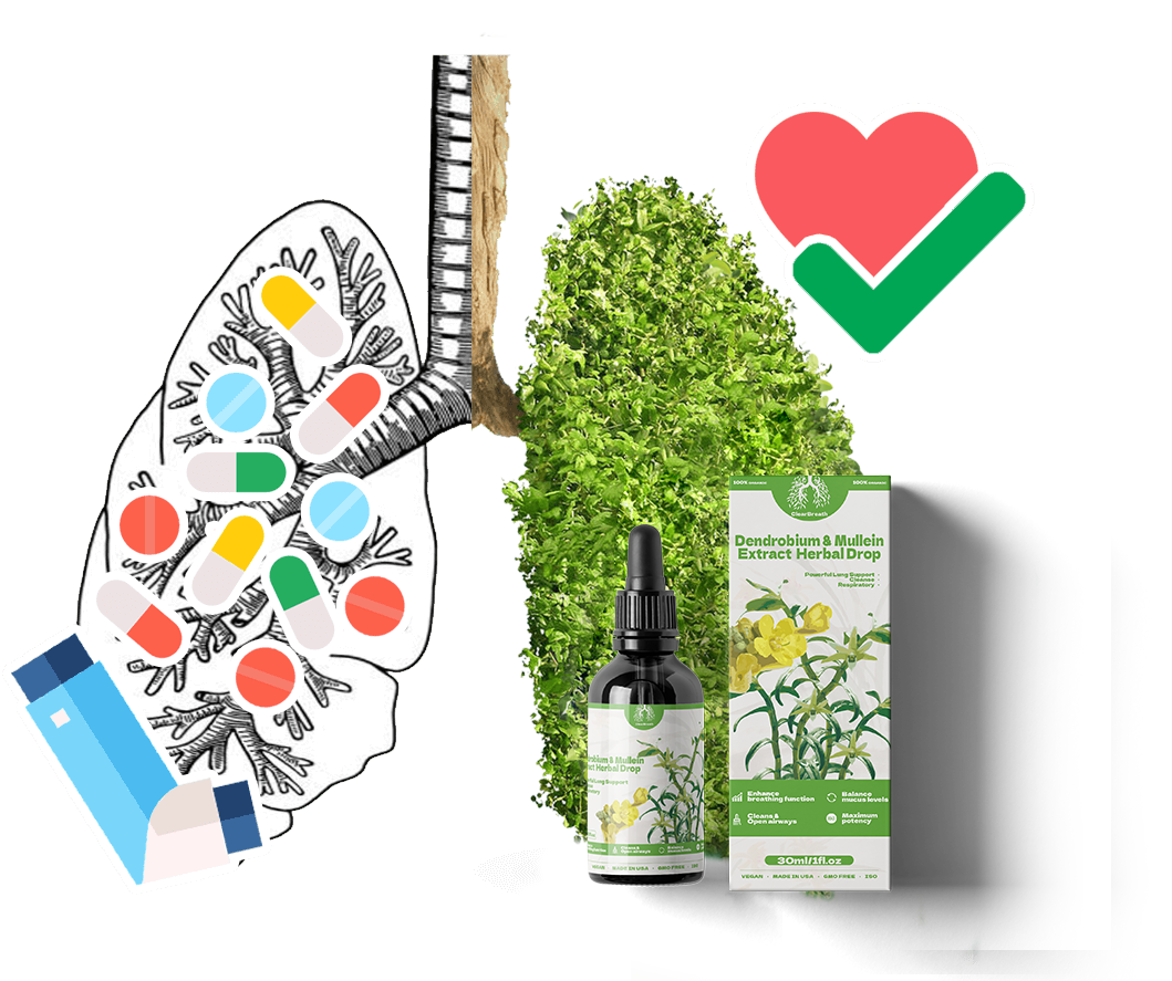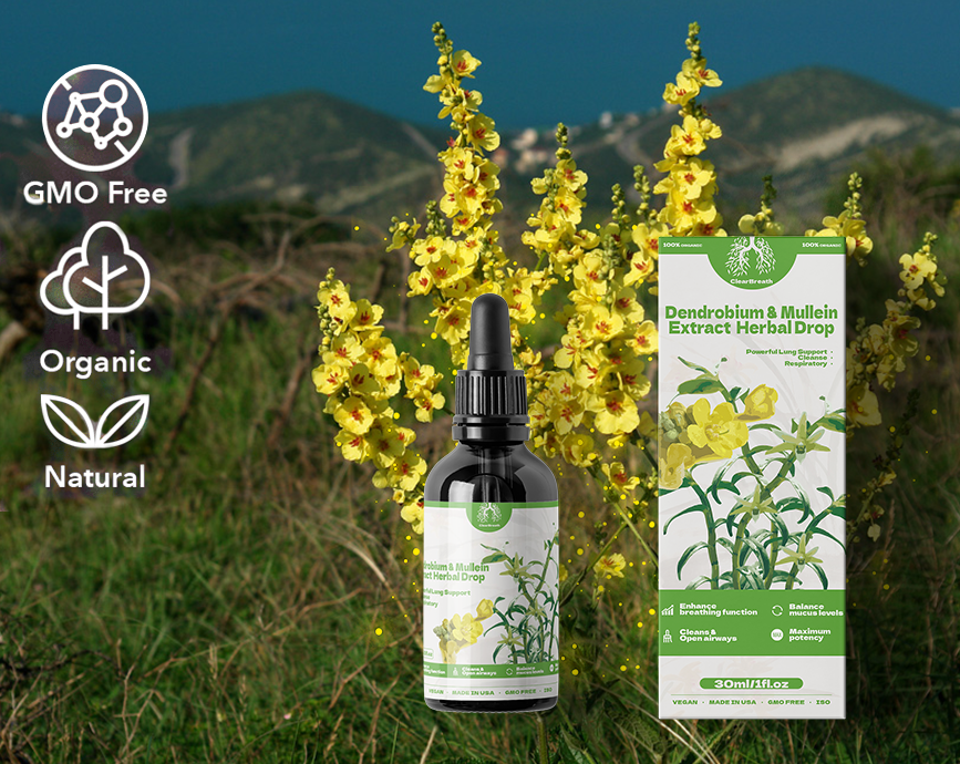 Are you having trouble breathing due to allergies, asthma, smoking, COPD, pneumonia, bronchitis, or a weakened respiratory system? ClearBreath® Dendrobium & Mullein Extract Herbal Drops gives you powerful lung support. Our formula is designed to cleanse your lungs and airways, channeling old mucus and lung buildup out. Unclog your airways and strengthen your breathing in 8 weeks, help you breathe easy again.