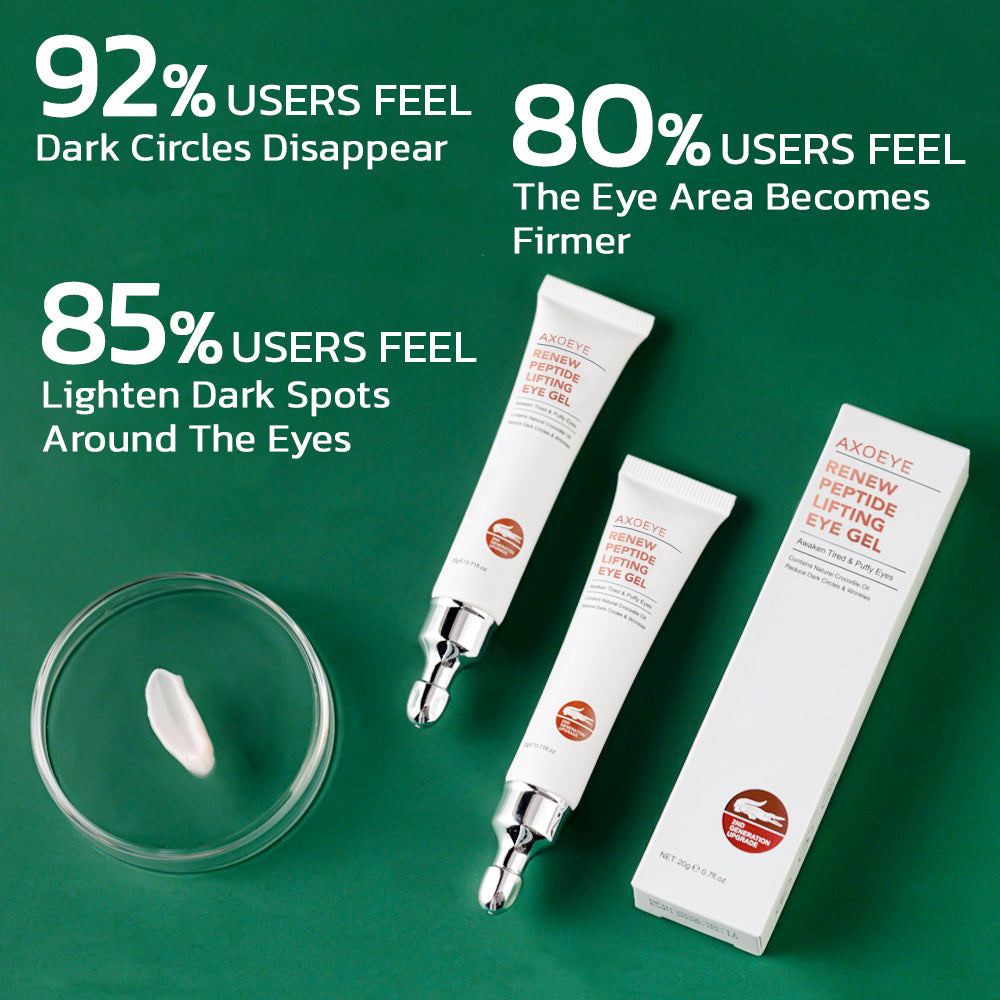 AXOEYE Renew Peptide Lifting Eye Gel is formulated with a safe, gentle tissue tightening agent which lifts away 83% fine lines and deep wrinkles instantly! It can effectively restore the plump and healthy elasticity of the pouch and wrinkles, suitable for long time use.