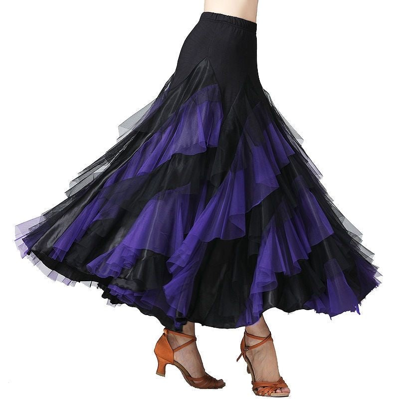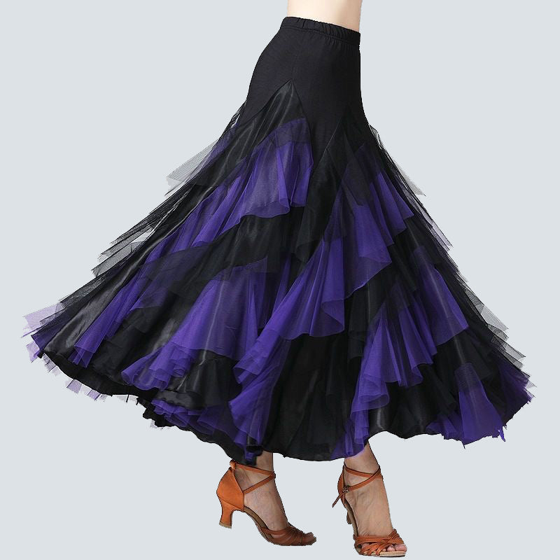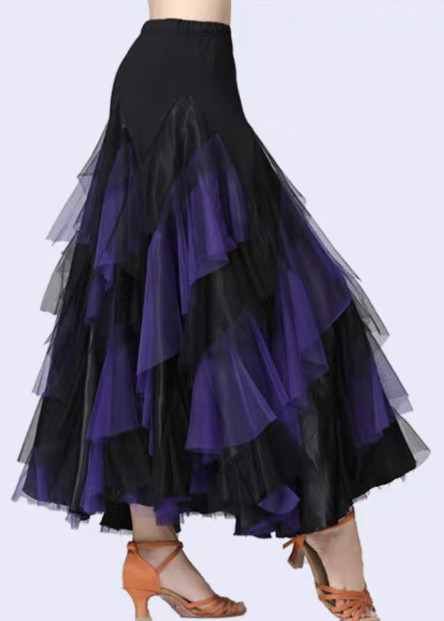 Chic Purple Wrinkled Patchwork Elastic Waist Tulle Skirts Spring
