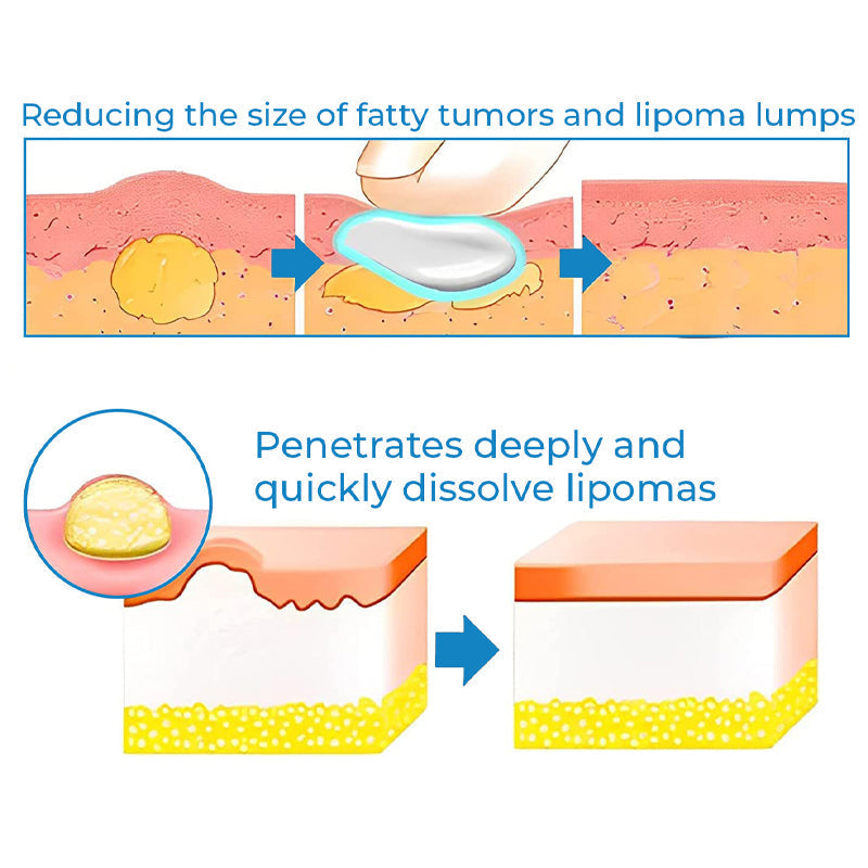 - Painless therapy, specifically created for benign lipomas, and anti-inflammatory from the skin's inside.