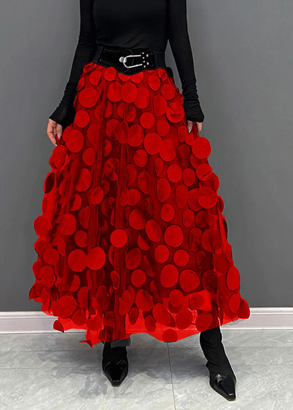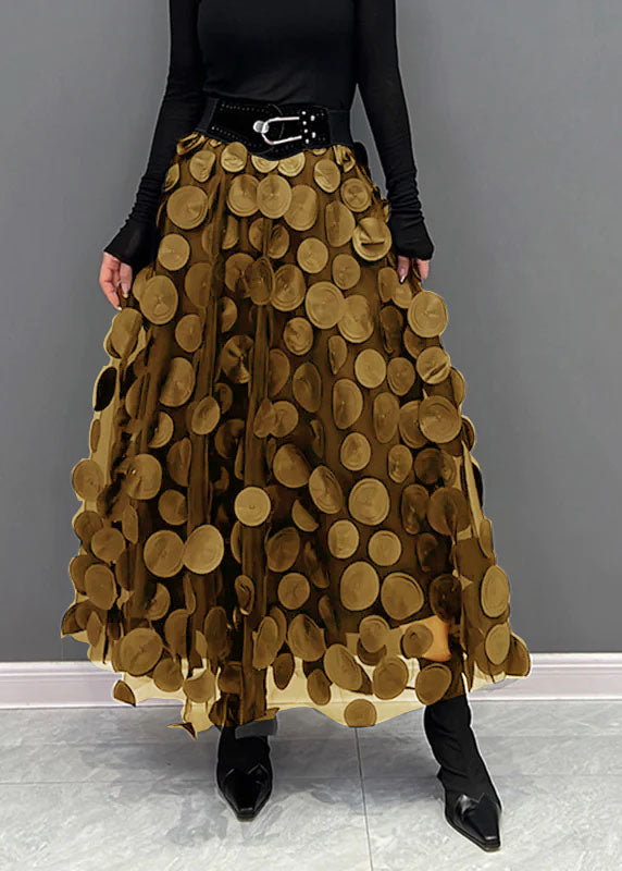 Elegant Green Dot Patchwork Tulle Skirt Fall