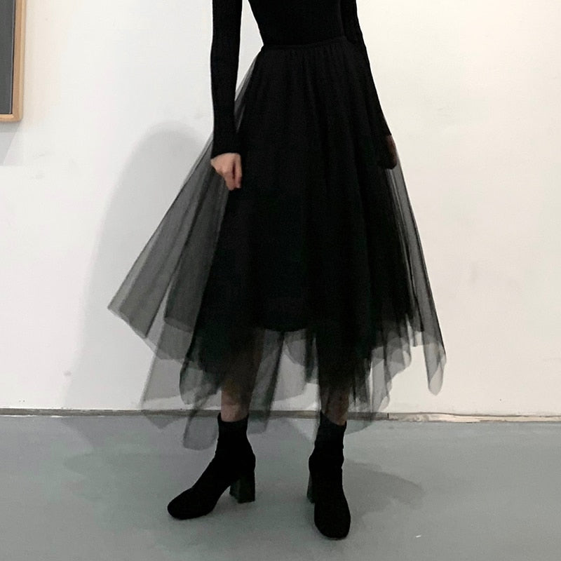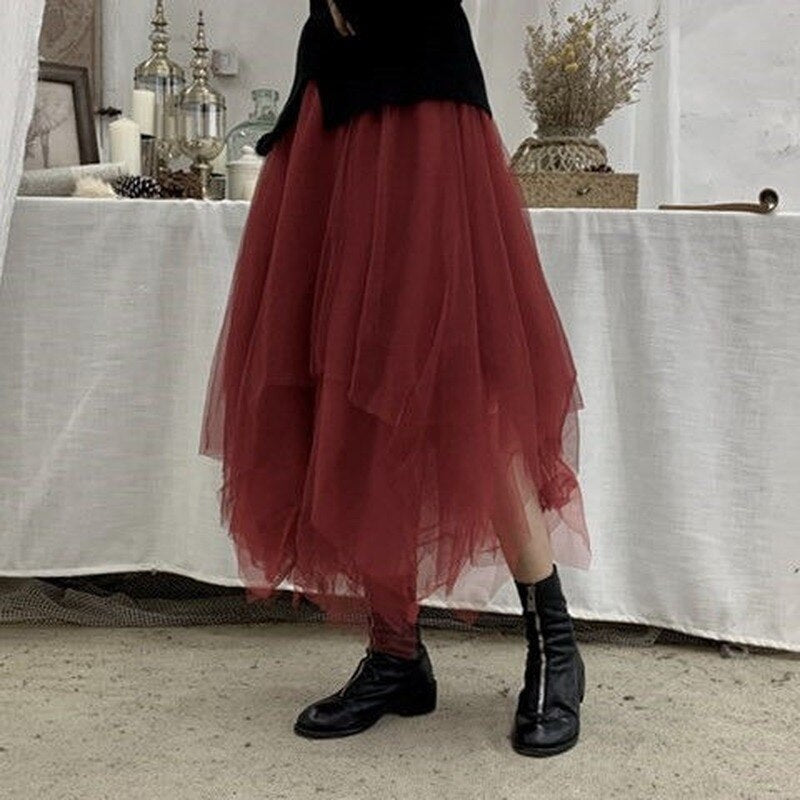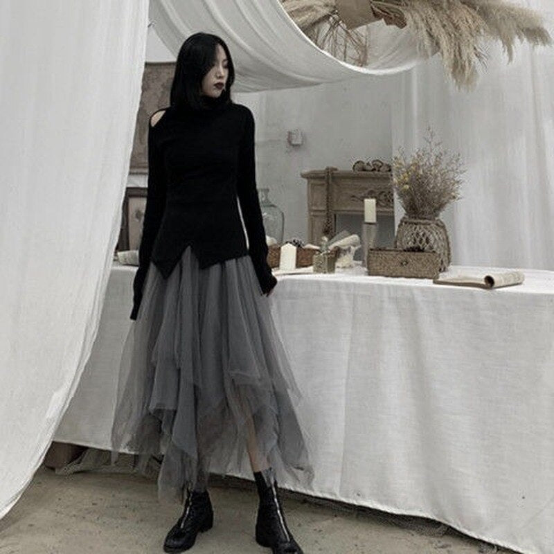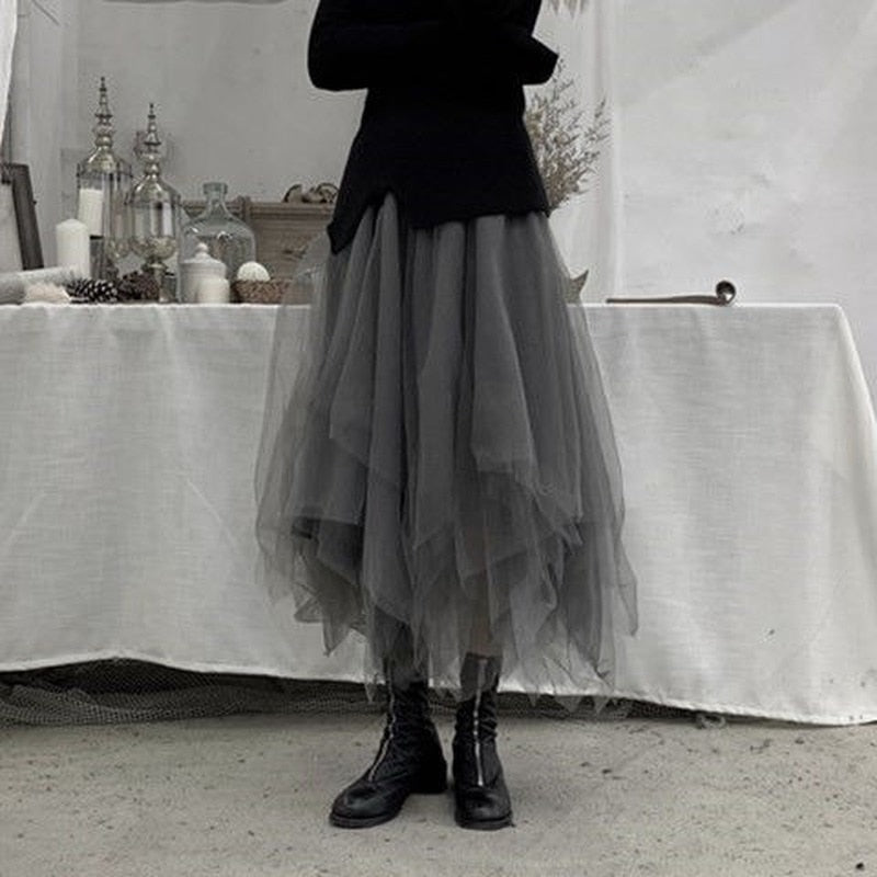 Plus Size Grey Patchwork Cute Tulle Skirts Spring