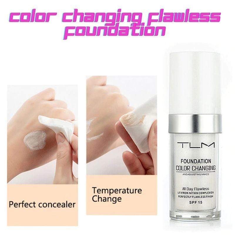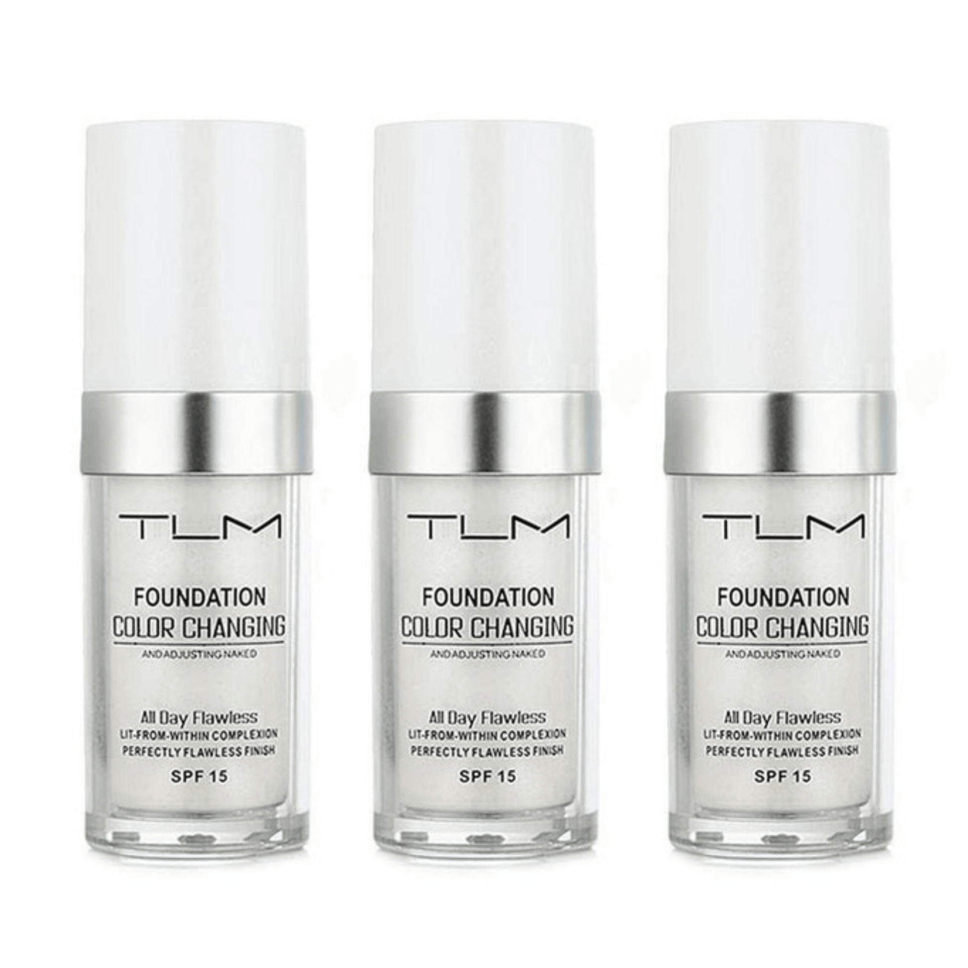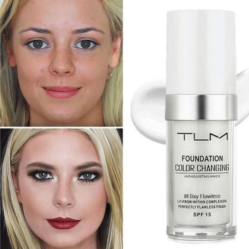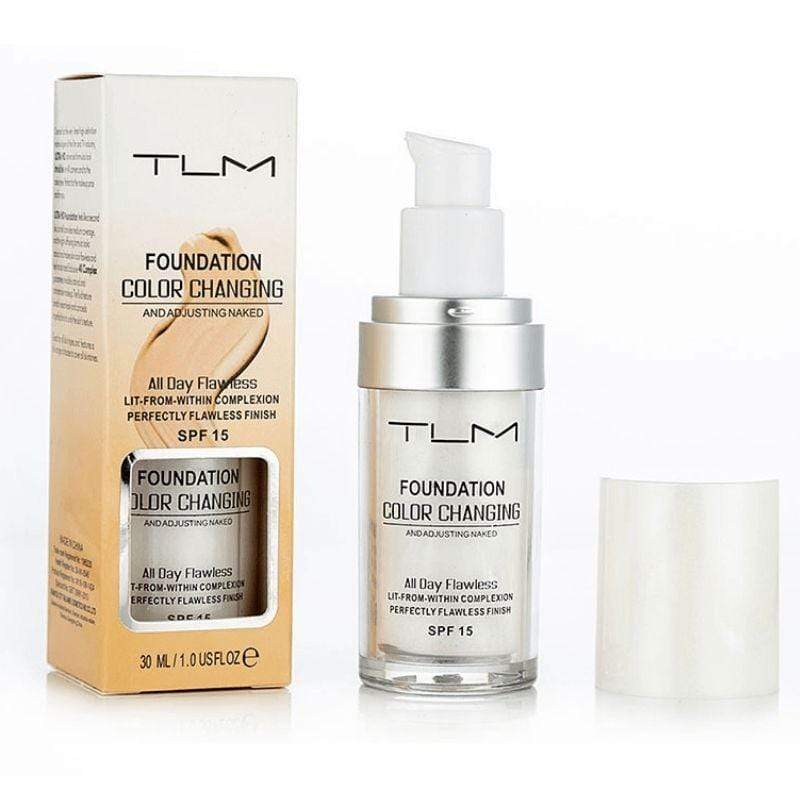 TLM Color Changing Foundation is a revolutionary new liquid foundation that goes on white and instantly self adjust to your skin tone.
