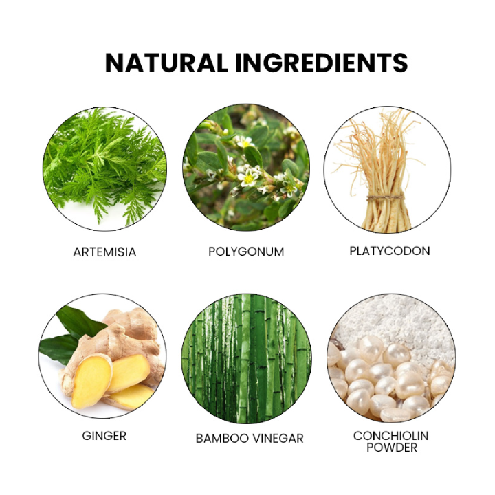 - Ginger extract, chia seed oil, artemisia extract, polygonum extract, conchiolin powder.