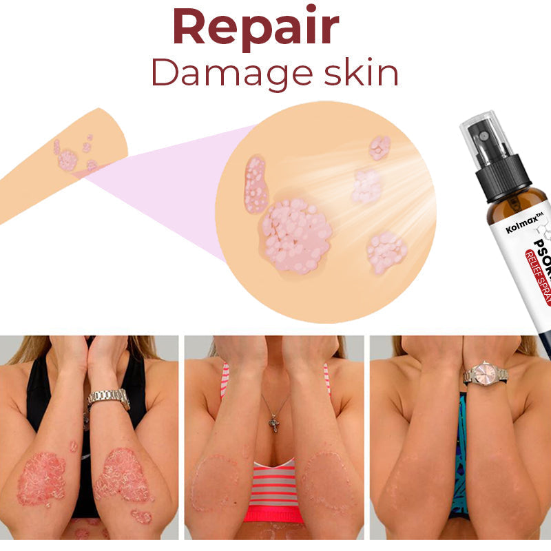 Kolmax™ Psoriasis Treatment Spray doesn't include any harsh chemicals that might aggravate already damaged skin because it works inside to clean the skin and reduce itching and inflammation from the inside out. Safe and efficient With addition to reducing inflammation, itching, and scaling associated with psoriasis, Kolmax™ helps decrease the overgrowth of skin cells that occurs in this condition.