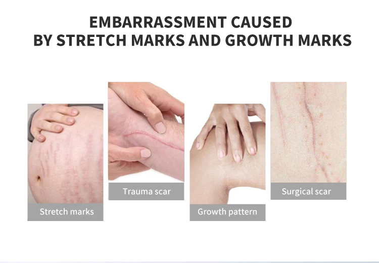 ▶Functional indications: Promoting blood circulation and removing scars. It is used for the auxiliary treatment of hypertrophic scars caused by burns, scalds, carbuncle, trauma, etc.It can also be used for stretch marks, obesity marks and growth marks.