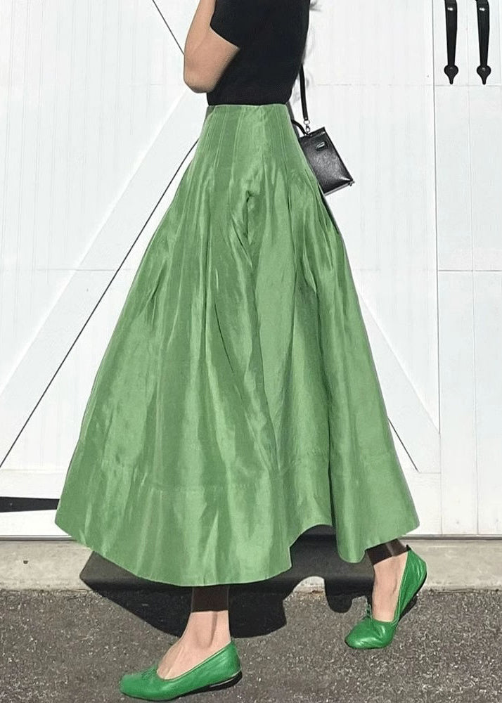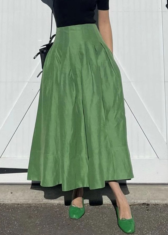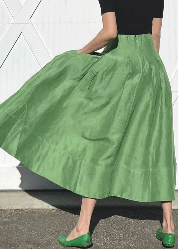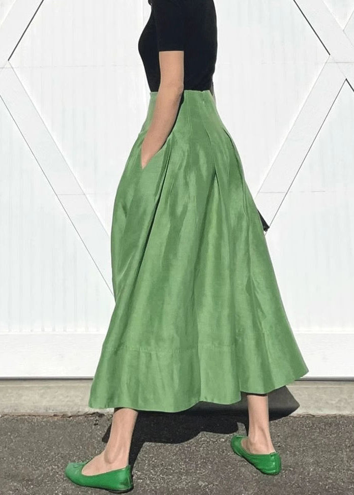 Simple Green Pockets Solid High Waist Cotton Skirts Summer